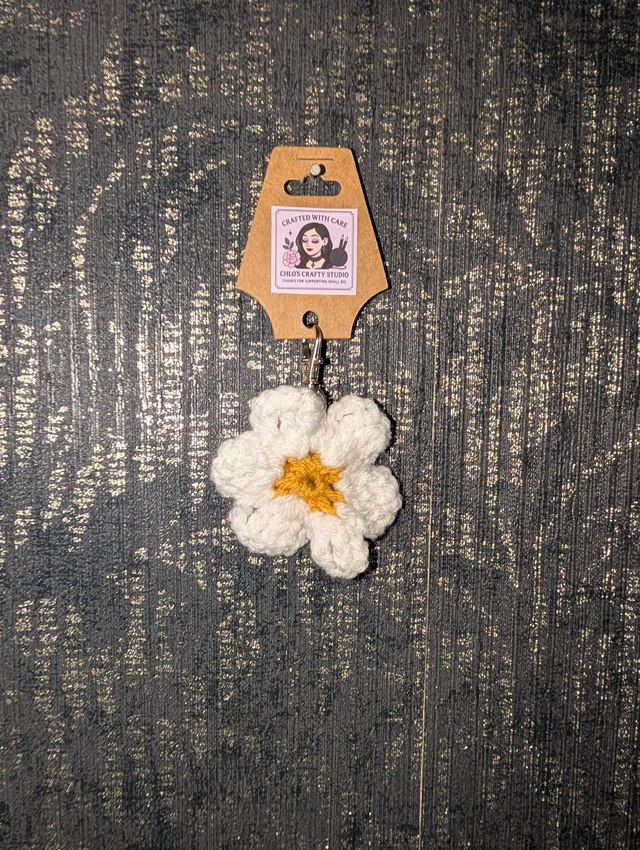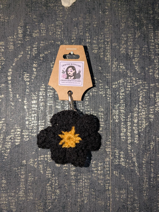 🌸 Handmade Crochet Flower Keyring | Colourful Floral Bag Charm | Custom Colour Keychain